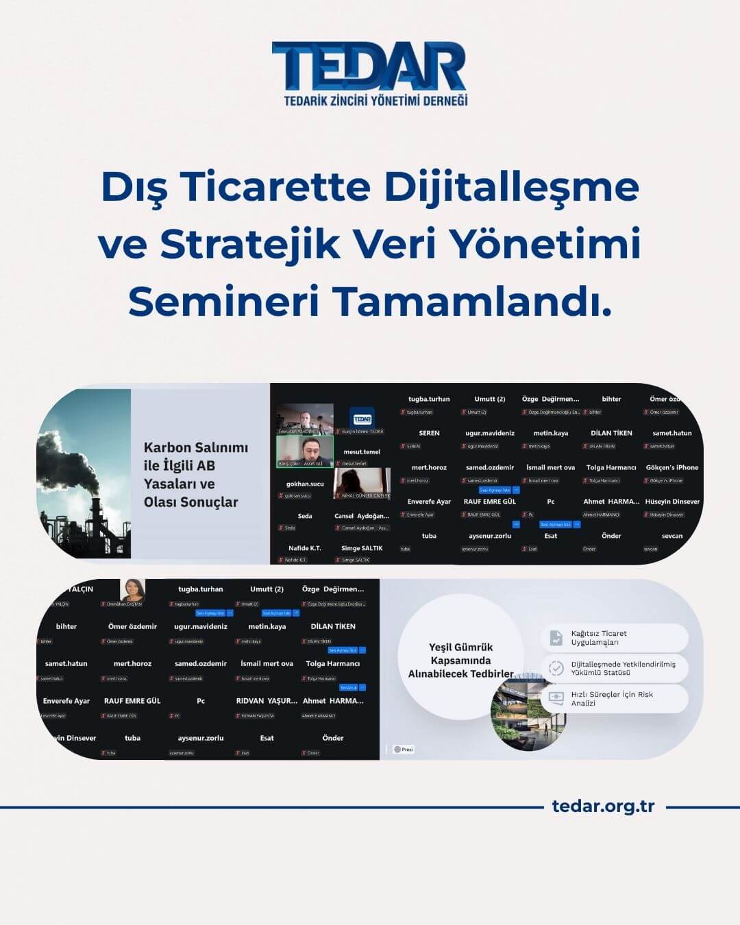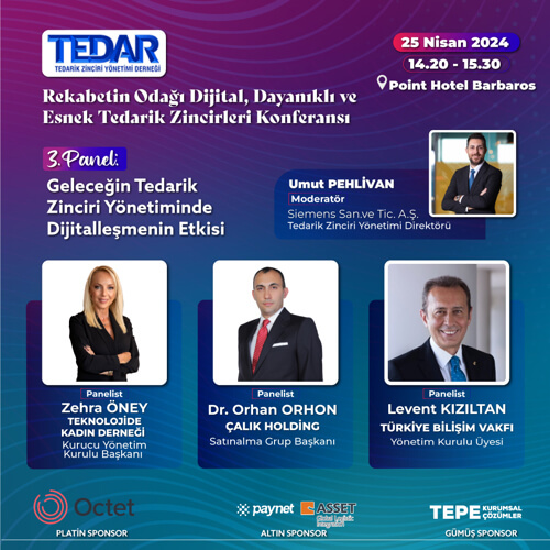 Aleyna Erdoğan’ın moderatörlüğünde gerçekleşen seminerde Turkcell İletişim Hizmetleri A.Ş. Tedarik Zinciri Yönetiminden Sorumlu Genel Müdür Yardımcısı Ali Türk’ün açılış konuşması sonrası konuk konuşmacı olarak katılan TEDAR Yönetim Kurulu Başkanı Tuğrul Günal “Geleceğin Sürdürülebilir Tedarik Zinciri" konusuna ilişkin bilgi ve tecrübelerini paylaşarak, katılımcıların sorularını cevaplandırdı.